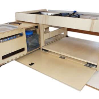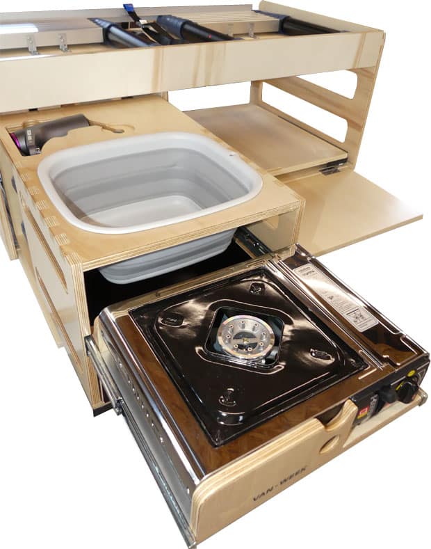 Si vous cherchez une solution complète, pratique et amovible pour l’aménagement de votre fourgon, van ou ludospace, la malle de voyage ou Camping Box VAN-WEEK s’impose comme la meilleure des réponses !